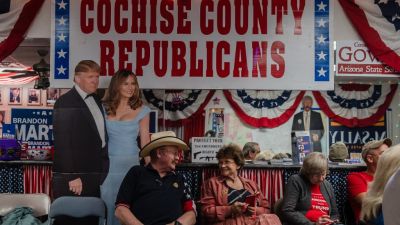Supporters of US President Donald Trump watch the television to see the numbers coming in at the Cochise County Republican Headquarters in Sierra Vista, Arizona on November 3, 2020. ARIANA DREHSLER / AFP