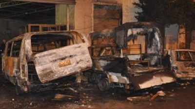 وقال شهود عيان انهم شاهدوا بعض الضباط يحرقون وثائق داخل المقر الذي احترق أحد طوابقه. وقالت الشرطة ان المواطنين أشعلوا النار في المقر. وقال شهود عيان ان سبعة أشخاص على الاقل من بينهم أفراد بالشرطة ومدنيون اصيبوا في الحريق.