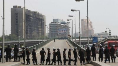 شرطة مكافحة الشغب تقطع احدى الطرقات في القاهرة