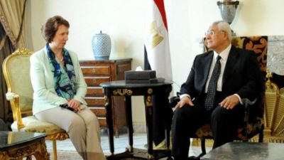 وكانت اشتون اعربت في وقت سابق عن رغبة الاتحاد الاوروبي في "عودة سريعة للمسيرة الديموقراطية"، واشارت الى "ضرورة النهوض بالاقتصاد، لان التطورات الاقتصادية والسياسية شديدة الارتباط"، كما صرح المتحدث باسمها مايكل مان لفرانس برس.