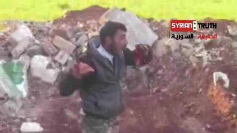 اقر مقاتل سوري معارض بقيامه بتقطيع جثة عسكري نظامي وانتزاع اعضاء من جسده والايحاء بانه على وشك التهامها، قائلا انه اقدم على ذلك ردا على ارتكابات قوات نظام الرئيس السوري بشار الاسد، بحسب ما قال لمجلة "تايم" الاميركية الثلاثاء.