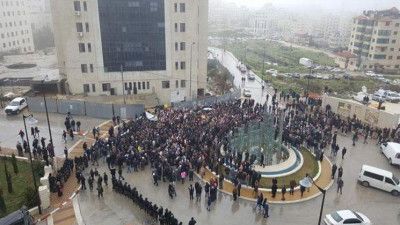 آلاف المعلمين يتظاهرون أمام مجلس الوزراء الفلسطيني في رام الله