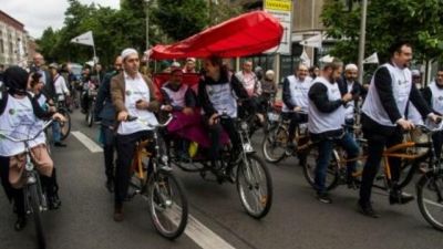 شارك حاخامات وأئمة في تظاهرة الاحد في وسط برلين ركبوا خلالها دراجات هوائية بمقعدين من اجل اظهار تأييدهم لاحترام الاديان ورفضهم لمعاداة السامية.