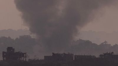 تصاعد أعمدة الدخان من قطاع غزة. 15 تشرين الثاني، 2023م. وكالة الصحافة الفرنسية.