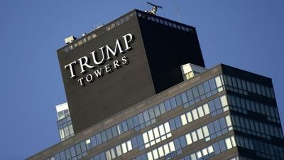 لافتة تحمل اسم دونالد ترامب على برج وسط إسطنبول