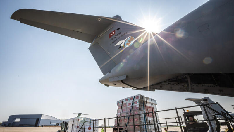 وتحمل طائرة الشحن التابعة للجيش التركي، أقنعة واقية للأطباء، وواقيات أوجه، وكمامات من طراز N95، ولباسا واقيا للأطباء، ومواد طبية وقائية.
