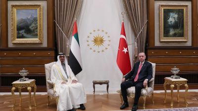 وكان الرئيس التركي رجب طيب أردوغان استقبل ولي عهد أبو ظبي، الشيخ محمد بن زايد، يوم الأربعاء الماضي، في أنقرة.