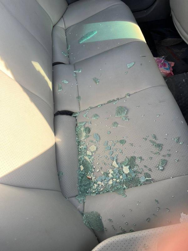 وقد نشر نائل قوقزة صورًا للسيارة التي تعرضت للإصابة جراء اختراق الرصاصة الطائشة لزجاجها.