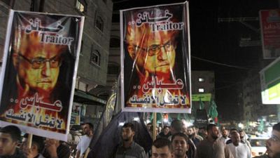 وتظاهر المئات من أنصار حماس وهم يرفعون الأعلام الفلسطينية ورايات الحركة للتنديد بتصريحات عباس التي قال فيها إنه ليس له الحق في العودة إلى بلدته الأصلية في صفد داخل إسرائيل.