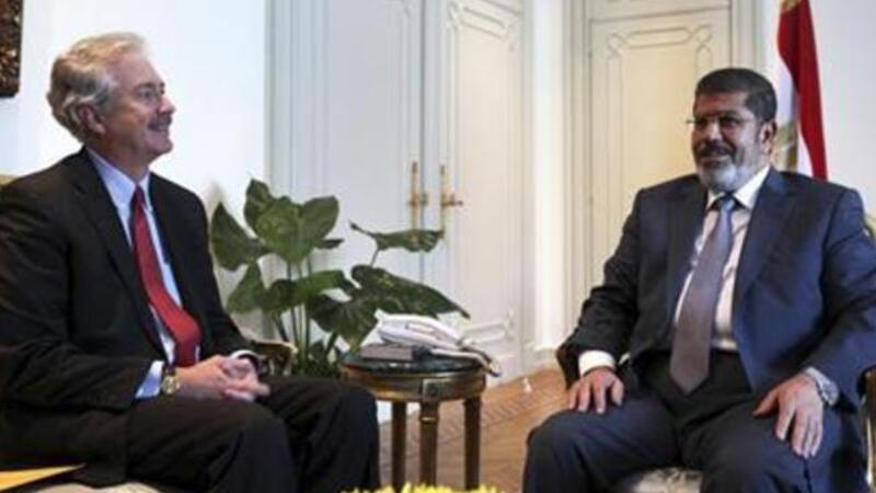 الرئيس المصري محمد مرسي خلال اجتماعه مع نائب وزيرة الخارجية الامريكية وليام بيرنز في القاهرة