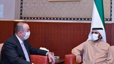 نائب رئيس دولة الإمارات، محمد بن راشد، يستقبل وزير الخارجية التركي مولود جاويش أوغلو