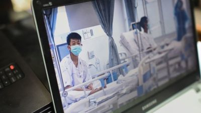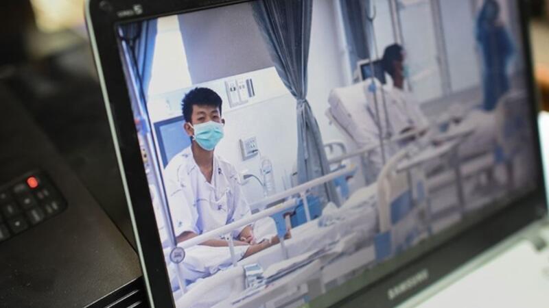 وجرى عرض التسجيل المصور للفتية في المستشفى في مؤتمر صحافي عقده رئيس مهمة الإنقاذ نارونجساك أوسوتاناكورن. وكان بعضهم يضع أقنعة طبية ويرقد على الأسرة.