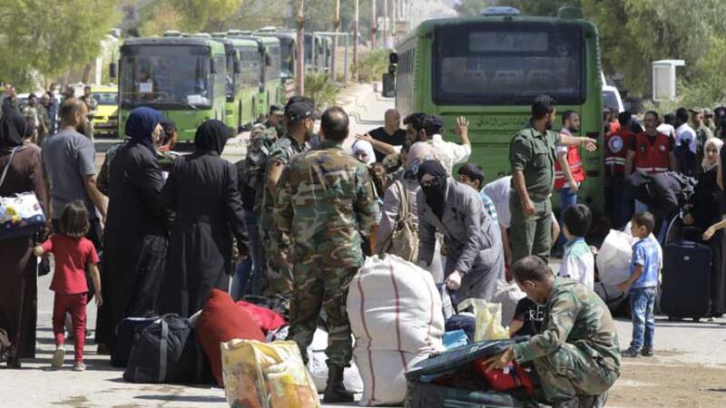 خرج الجمعة أكثر من 300 من اهالي مدينة داريا السورية الذين كانوا قد نزحوا إلى معضمية الشام المجاورة، متوجهين على متن حافلات إلى مراكز اقامة مؤقتة في ريف دمشق استكمالا للاتفاق بين الحكومة السورية وفصائل المعارضة، وفق ما افاد مصور لوكالة فرانس برس.