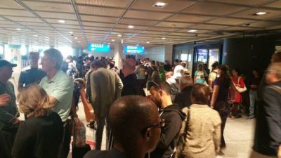 وقالت شركة فرابورت لوكالة "رويترز" ان "الشرطة الاتحادية أخلت القسم أ وأ+ وسيخضع الركاب للتفتيش الأمني مجددا".