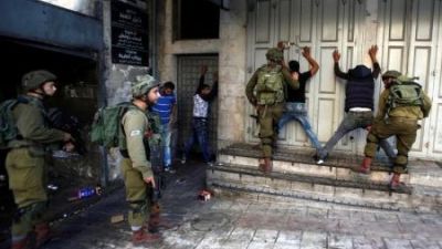 ارشيف/ جنود اسرائيليون يوقفون فلسطينيين في مدينة الخليل