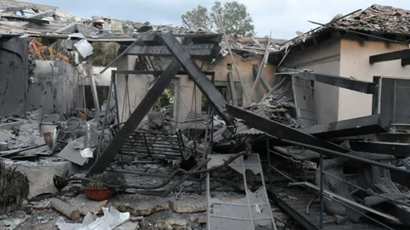الصاروخ أصاب مباشرة أحد البيوت شمال تل أبيب وأحدث دمارا كبيرا