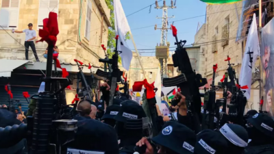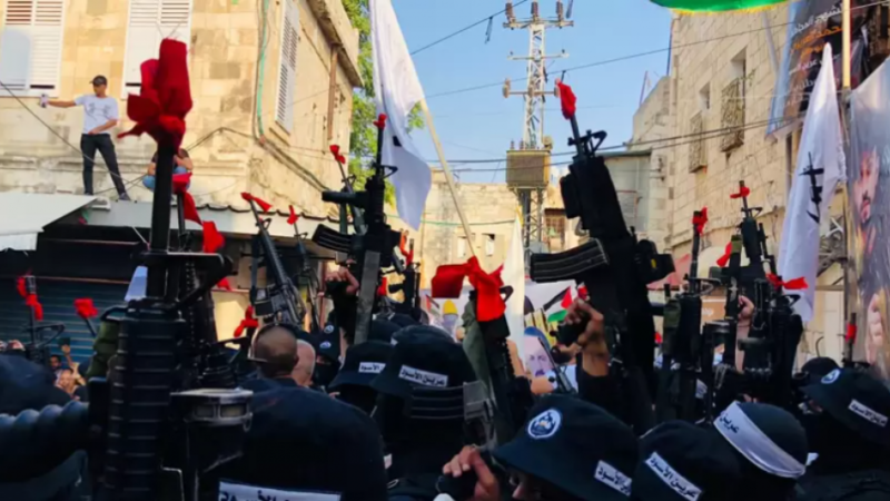 مسلحون فلسطينيون من مجموعة عرين الأسود في نابلس