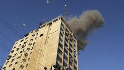 قصفت طائرة اسرائيلية بنايتين تضمان المكاتب الخاصة ببعض وسائل الإعلام في غزة يوم الأحد مما أسفر عن إصابة ثمانية صحفيين واثار قلق الاعلاميين الذين يقومون بتغطية انباء القتال بين المسلحين الفلسطينيين واسرائيل.