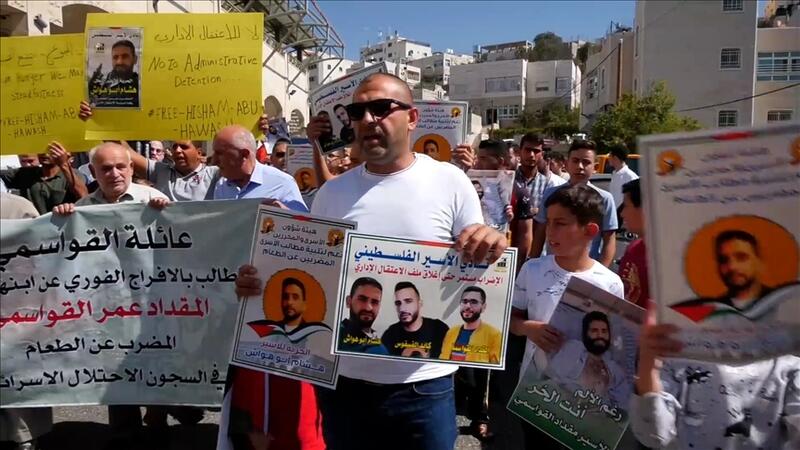ويواصل 6 أسرى فلسطينيين الإضراب عن الطعام رفضًا لاعتقالهم إداريا، أقدمهم كايد الفسفوس منذ 86 يومًا، يليه مقداد القواسمة منذ 79 يوما، وعلاء الأعرج منذ 62 يوما، وهشام أبو هواش منذ 53 يوما، ورايق بشارات منذ 48 يوما، وشادي أبو عكر منذ 45 يوما.