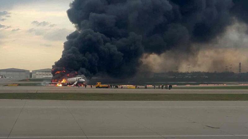 إصابين باشتعال نيران بطائرة ركاب لدى هبوطها اضطراريا قرب موسكو