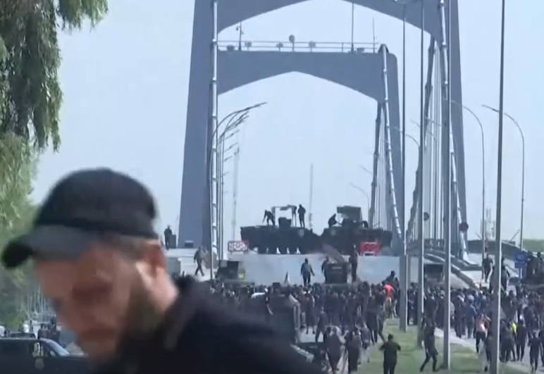 وكانت القوات العراقية أعلنت في وقت سابق حالة الإنذار القصوى في بغداد وقطعت إجازة منتسبيها، على خلفية المظاهرات الحاشدة التي خرجت في المدينة في اعقاب اعلان الصدر.