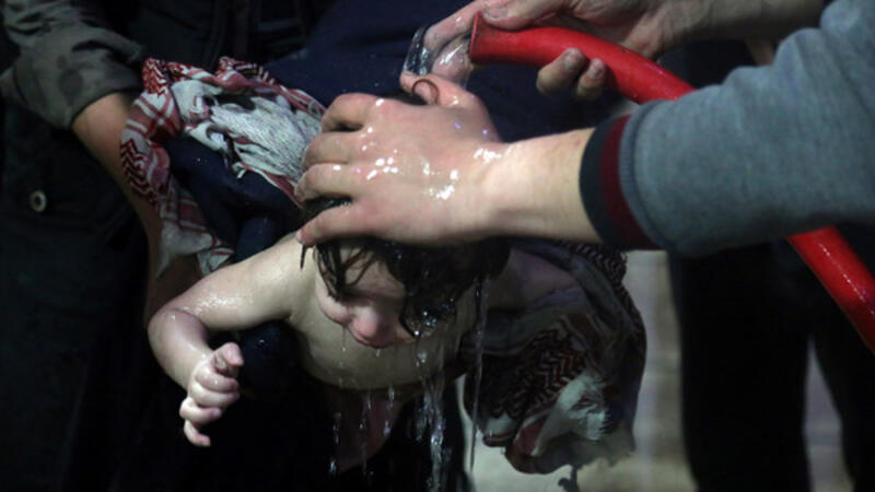 وقتل 100 شخص وأصيب المئات من الأطفال والنساء بالاختناق جراء هجمات النظام بالغازات السامة في السابع من إبريل الجاري.