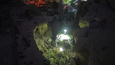 وقالت المديرية: إن "العمل مستمر طيلة ساعات اليل، وتمكنت فرق الدفاع المدني من إيصال الأكسجين ومياه الشرب والطعام للمحتجزين عبر إتمام عمل ثغرات في كومة الركام والكتل الخرسانية مع التواصل اللفظي المستمر لطمأنتهم"، لافتةً إلى أن "الفرق نجحت بإخراج طفلين وصبِيٍّ بصحة جيدة تم نقلهم إلى المستشفى لمتابعة وضعهم الصحي ومازلت تجهاد وتواصل أعمال الإنقاذ لحين إخراج جميع المحتجزين من الزائرين والعمال".