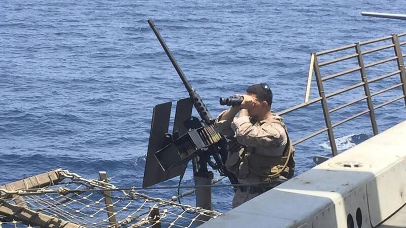ونشر بيل أوربان المتحدث باسم القيادة المركزية للجيش الأمريكي يوم الخميس تسجيلا مصورا قال الجيش الأمريكي إنه يظهر قاربا للحرس الثوري الإيراني يقترب من الناقلة كوكوكا كاريدجس “وجرت ملاحظة وتسجيل إزالة لغم لم ينفجر من كوكوكا كاريدجس”.