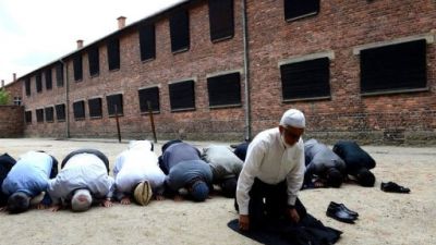 صلى ائمة اتوا من مختلف انحاء العالم معا من اجل ضحايا المحرقة الاربعاء امام جدار معسكر اوشفيتز السابق الذي اقامته المانيا النازية في جنوب بولندا.