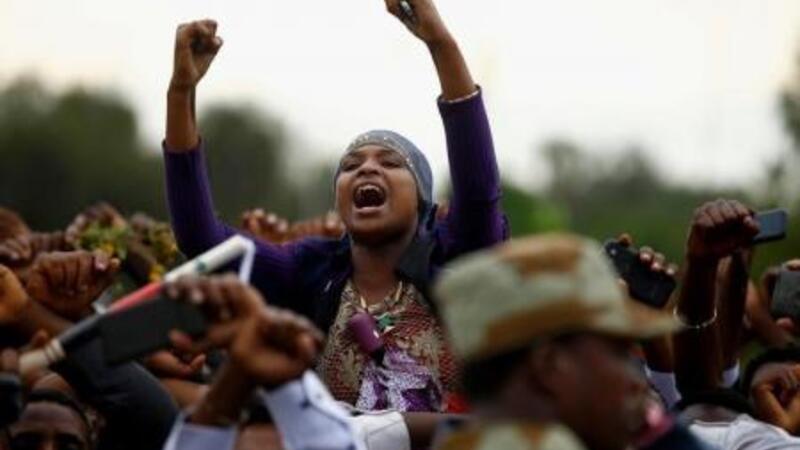 وردد المحتجون حينها هتافات معادية للحكومة ولوحوا بإشارات ترمز إلى القمع بينما لوح البعض برايات جبهة تحرير أورومو وهي جماعة متمردة محظورة.