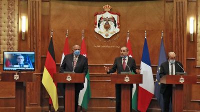 واعتبر الاتفاقات السابقة ضرورية ك"إطار" لإعادة إطلاق التعاون بين الطرفين، ودعاهما إلى "تنفيذ الالتزامات الضرورية وتطبيقها بسرعة". من جهته، قال وزير الخارجية الأردني أيمن الصفدي "جميعنا قلقون من حال الانسداد السياسي في المفاوضات الفلسطينية الإسرائيلية، وندرك أنه لا بد من تحقيق تقدم نحو السلام الشامل والعادل". وأضاف أن "اللحظة حرجة وصعبة لكن لا يمكن ان يتوقف وعلينا أن نستمر بجهودنا".