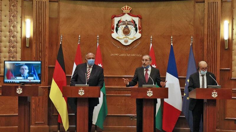 دعا اجتماع ضم وزراء خارجية الأردن ومصر وفرنسا وألمانيا وممثل الاتحاد الأوروبي للسلام الخميس 09/24 إسرائيل والفلسطينيين على "إعادة الأمل" لعملية السلام عبر مفاوضات مباشرة "جادة".
