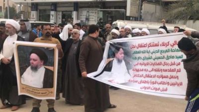 ورفع المحتجون لافتات تستنكر اعتقال “الشيرازي” في إيران، وتدعو الحكومة العراقية إلى التدخل لإطلاق سراحه.