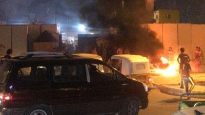 احتجاجات وأعمال حرق قرب القنصلية الإيرانية بكربلاء