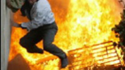 وقام المتظاهرون برشق عناصر مكافحة الشغب بالحجارة لمنعهم من حماية المبنيين اللذين يضمان السيارتين كما حاولوا ابعاد سيارات الاطفاء لمنعها من اطفاء النيران.
