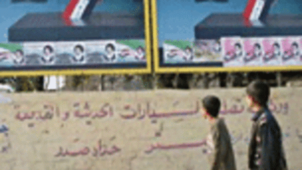 وتحث الكثير من الملصقات العراقيين على التصويت لصالح قائمة الائتلاف العراقي الموحد الشيعية المؤلفة من 228 مرشحا. ولم يعلن الا عن أقل من خمس المرشحين.