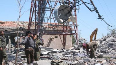 وشاهد مراسل لوكالة فرانس برس في الموقع امس ابنية وسيارات مدمرة بالكامل جراء القصف، ومقاتلين من الوحدات فوق الانقاض يراقبون حجم الدمار الذي طال المكان. كما انهار الجزء العلوي من عمود إرسال ضخم جراء القصف.