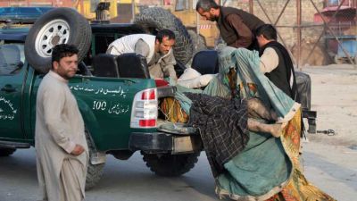 وقال المتحدّث باسم الوزارة نصرت رحيمي في رسالة إلى الصحافيين إنّ “16 شخصاً قتلوا وأصيب 119 بجروح في هجوم الأمس. الانفجار نجم عن جرافة مفخّخة”. (أ ف ب)