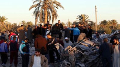 وأظهرت صور نشرتها السلطات الليبية حفرة هائلة كما أظهرت عددا من الرجال المضمدة جراحهم في مستشفى.