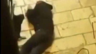 وتداول صحافيون وناشطون فلسطينيون في القدس، مقطعا مصورا، لمنفذ عملية الطعن قرب بابي حطّة والأسباط، ملقى على الأرض.