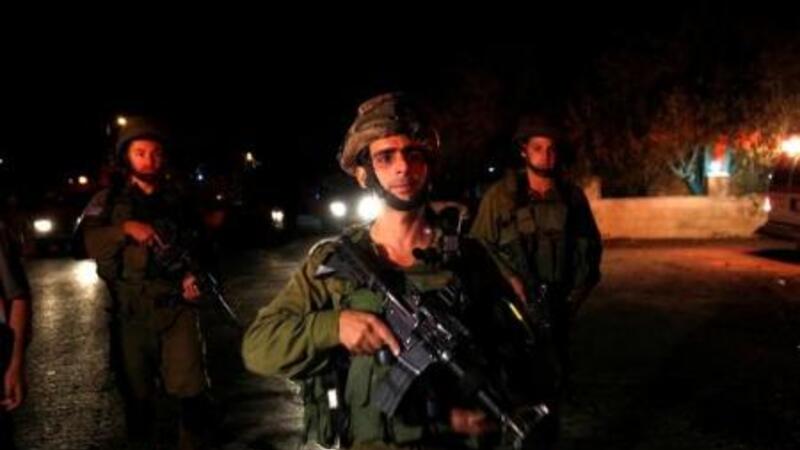 جنود اسرائيليون في موقع قام فيه فلسطيني باطلاق النار على جنود اسرائيليين في رام الله