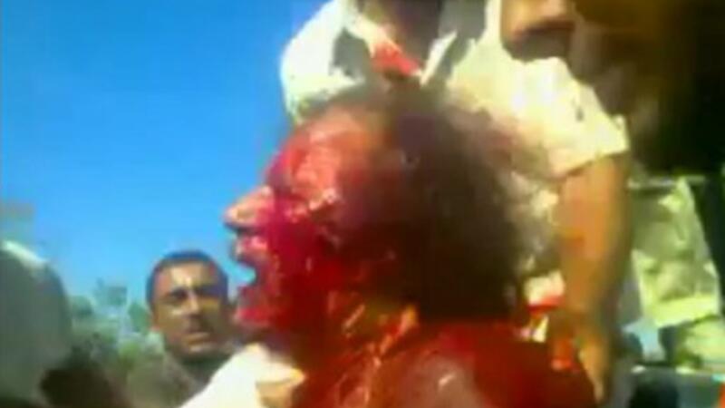وأظهرت لقطات فيديو رجلا يشبه القذافي بشعره الطويل وقد تلطخ وجهه بالدماء ويتعرض للضرب من مسلحين يبدو انهم من مقاتلي المجلس الوطني الانتقالي الليبي.