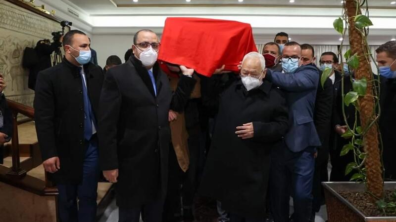 وتقدم مستقبلي الجثمان رئيس البرلمان وحركة "النهضة" راشد الغنوشي، ورئيس البرلمان السابق عبد الفتاح مورو، إضافة إلى عدد من نواب الحركة، ونواب آخرين.