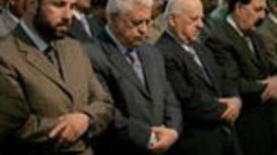 وقبل اللقاء شارك الرجال الاربعة مع عباس في صلاة الجمعة في المقاطعة مقر السلطة الفلسطينية في رام الله.