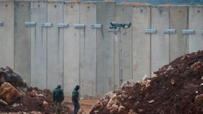 جنود اسرائيليون امام جدار شيد على الحدود مع لبنان