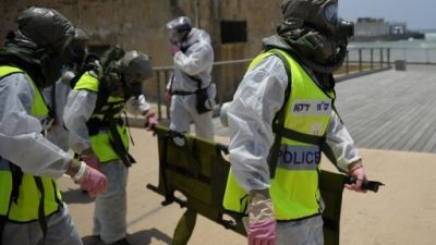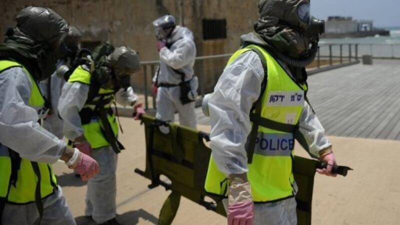 منقذون اسرائيليون خلال عمليات اخلاء وهمية في تل ابيب