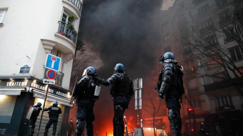 واندلعت أعمال العنف في باريس للمرة الثانية على التوالي في عطلة نهاية الأسبوع في احتجاج حاشد حيث اشتبك المتظاهرون مع الشرطة ، وأضرمت النيران في السيارات وتحطمت نوافذ المتاجر.