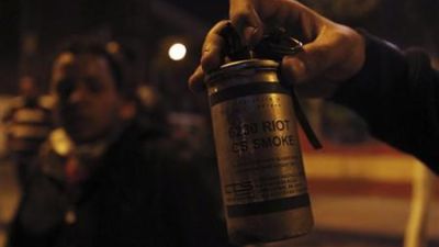 متظاهر ضد الرئيس محمد مرسي يحمل قنبلة غاز مسيل للدموع فارغة اثناء الاشتباكات مع شرطة مكافحة الشغب امام مديرية امن بورسعيد يوم الاثنين
