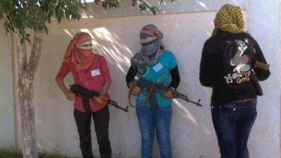 صورة يتداولها نشطاء سوريون على الفيسبوك لمقاتلات في الجيش الحر في مدينة الحسكة