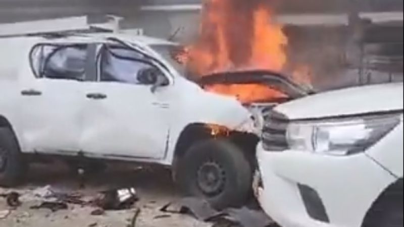 واظهر تسجيل فيديو على مواقع التواصل سيارات متضررة اشتعلت النيران في عدد منها جراء القصف الذي طال منطقة دوفيف.